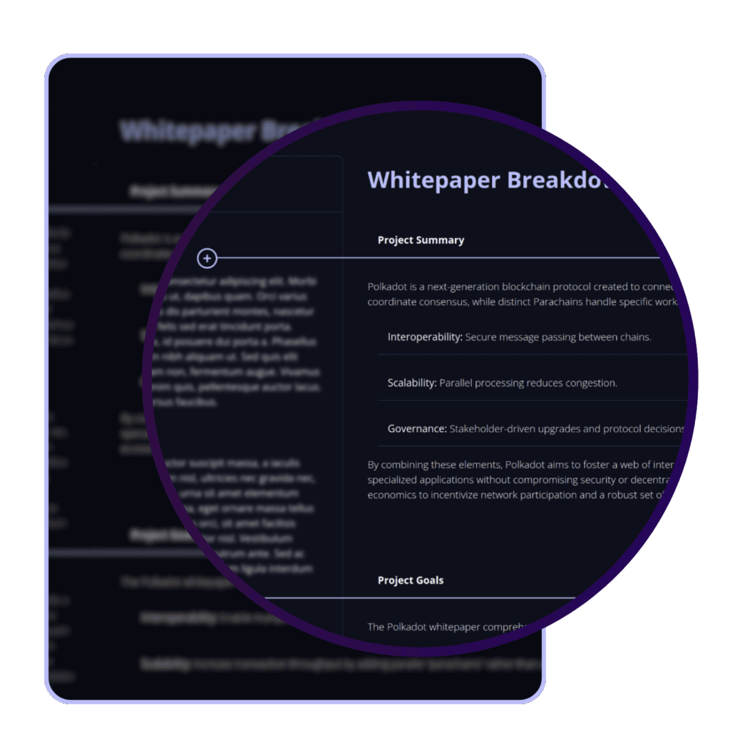 We use 60+ data points to perform deep research for your selected cryptocurrency. AI will analyse massive amounts of data, such as whitepapers, social media and the web.